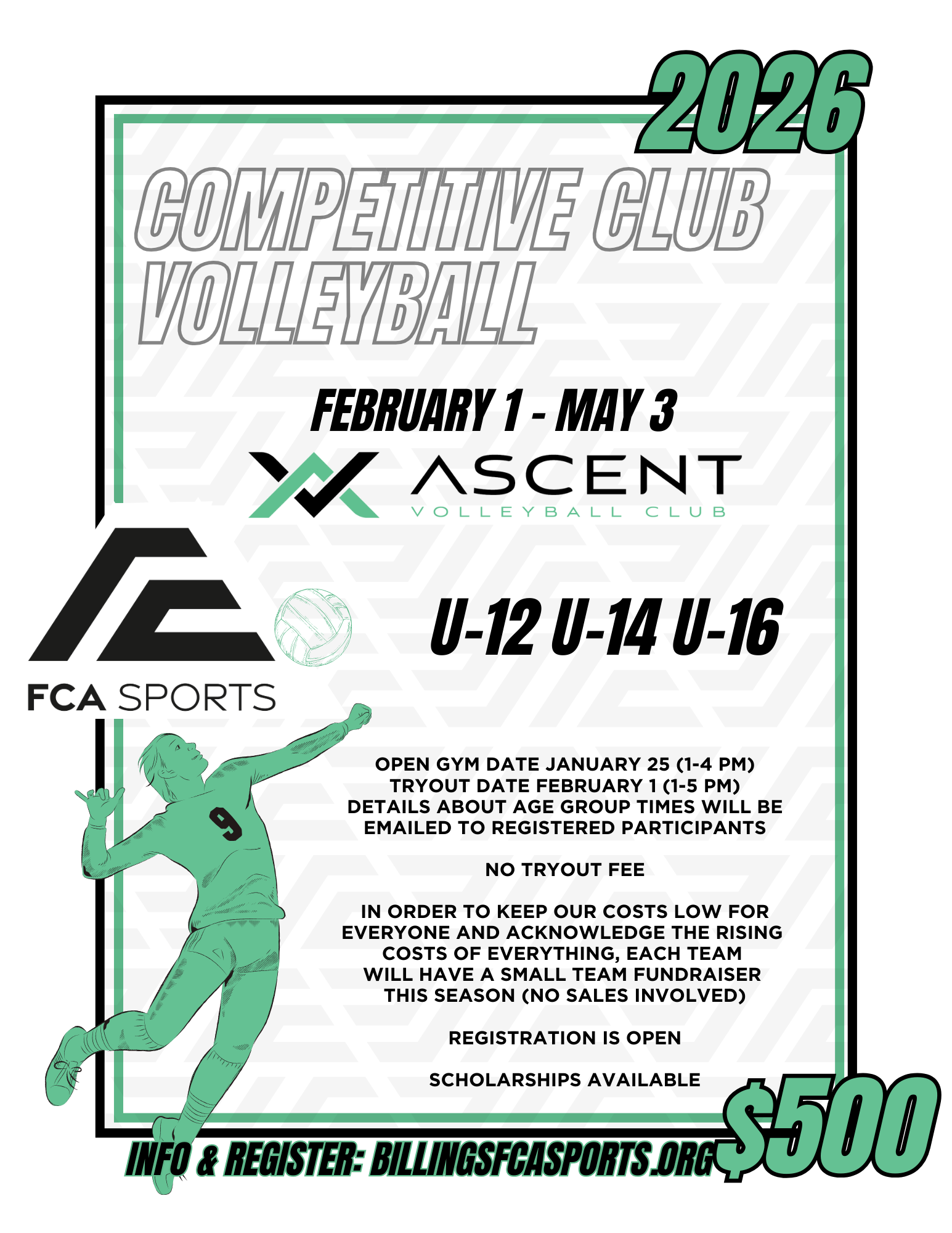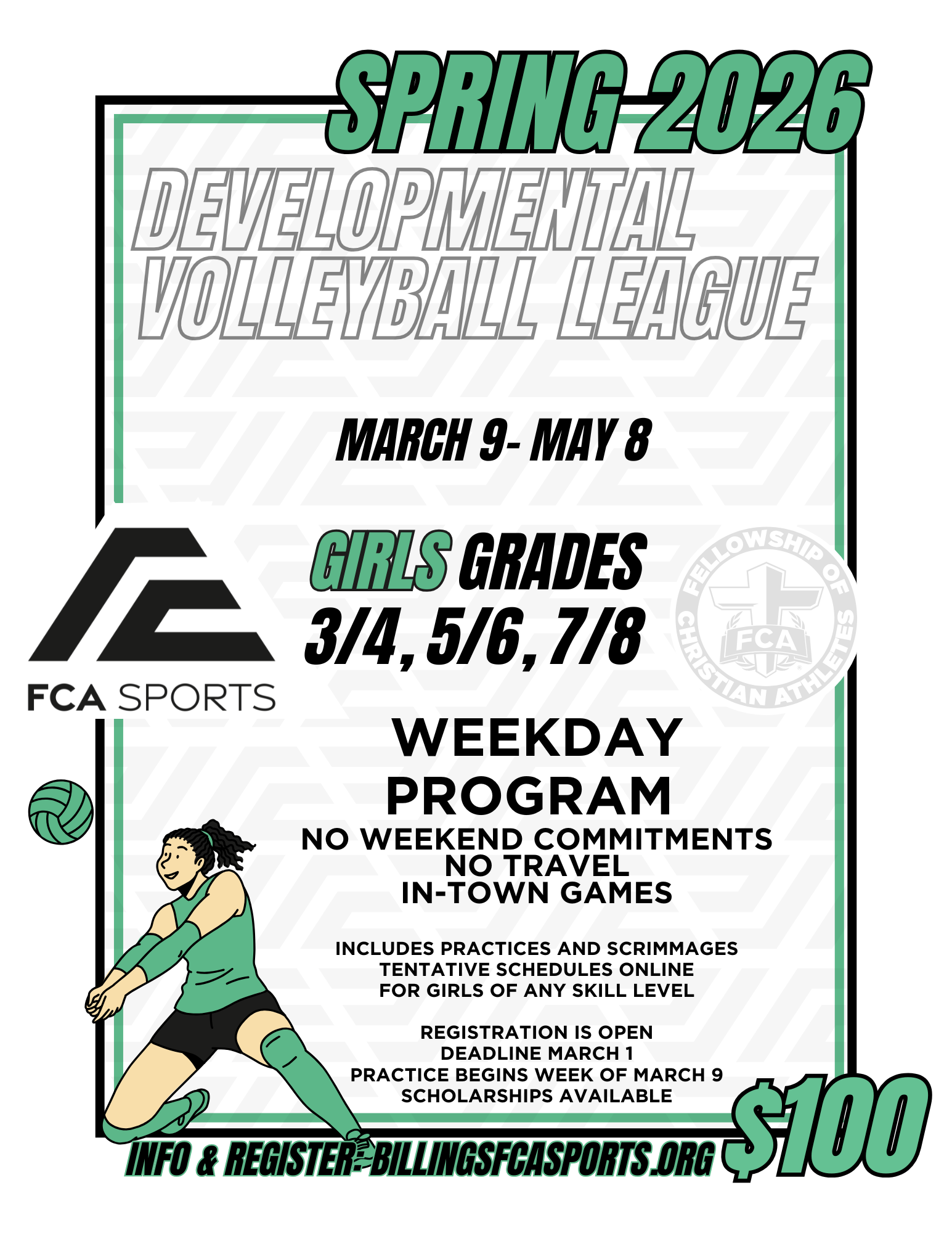 FCA Volleyball in Billings provides an exceptional, character-shaping sports experience grounded in FCA Sports’ commitment to holistic athlete development—helping players grow in skill, confidence, teamwork, and purpose in a supportive and encouraging environment . Whether athletes are seeking competitive opportunities or a place to learn and belong, FCA Volleyball offers pathways for every level of player.